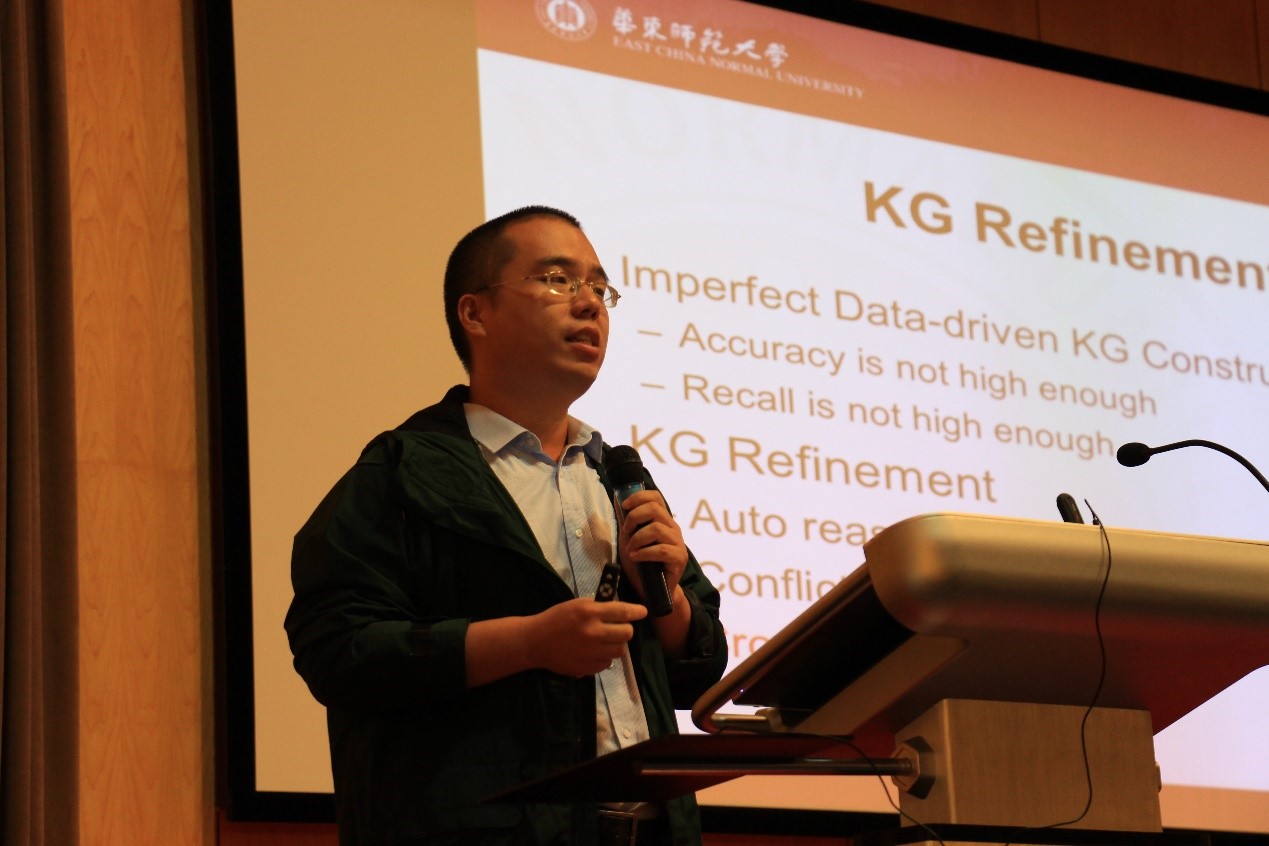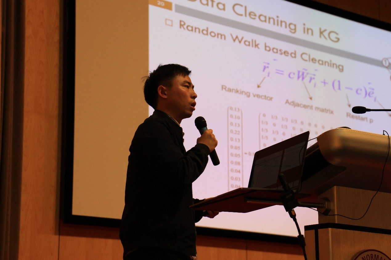 苏州大学的李直旭博士以《知识图谱构建的质量控制》为题,重点介绍了有关知识图谱的质量控制方面的相关前沿工作,并简要介绍他们在该方向上做的一些前瞻性研究工作。