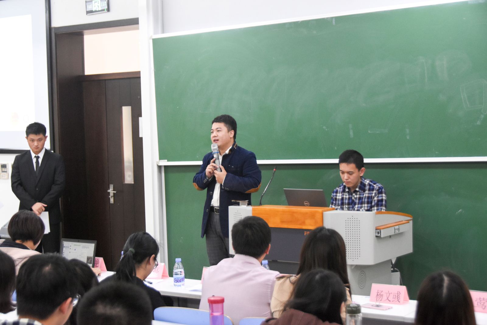 接下来是本届党章学习小组代表、计算机系研究生史夏琰同学发言,史夏琰同学表示,我们应该抓住机会,克服障碍,积极进取,并在实际生活中将理论知识实验运用,从而提高同学们的思想觉悟。同时,史夏琰同学作为代表,为按时参加党课、及时上报思想报告等事项做出了保证。