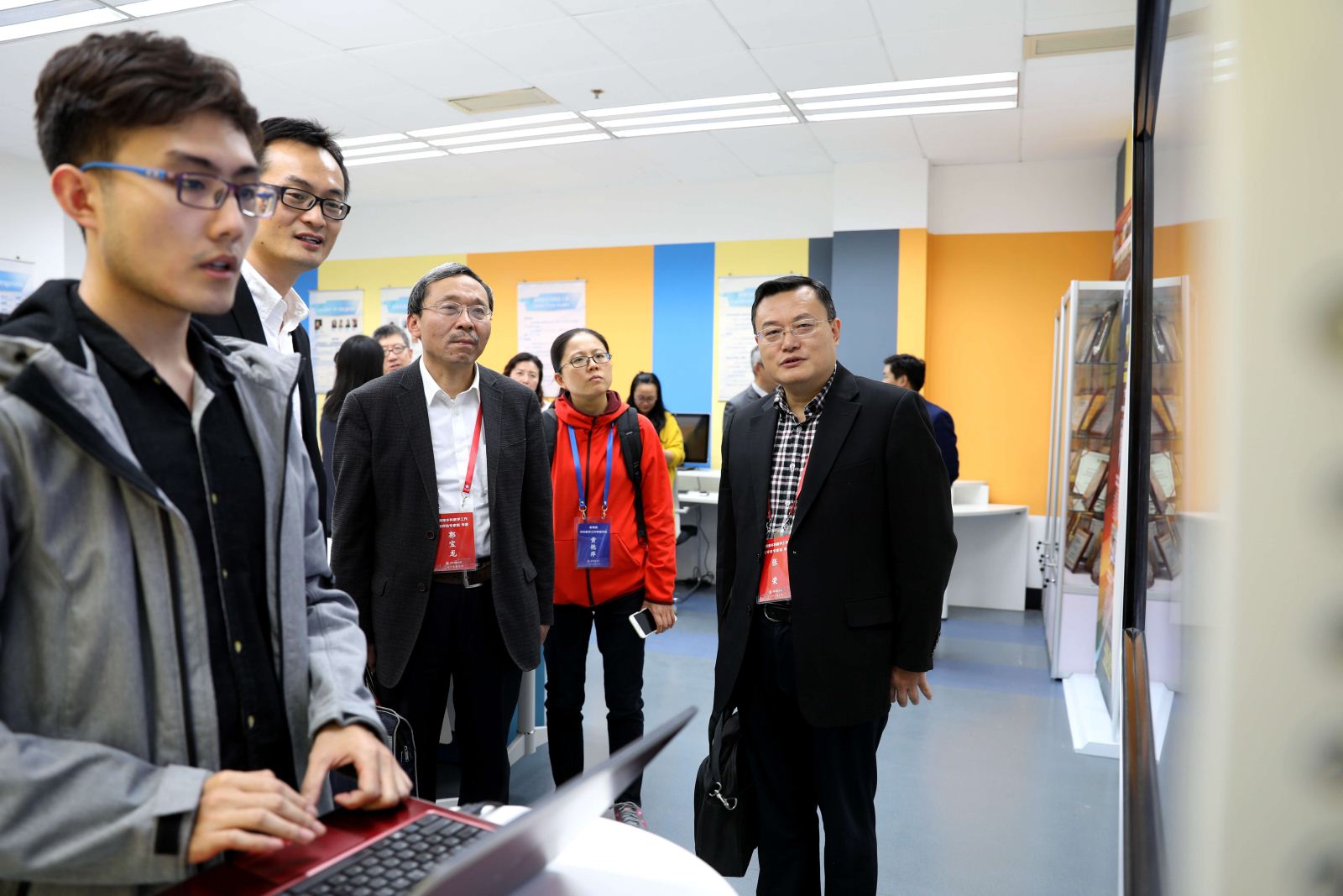 教育部专家组一行在学院领导的陪同下,详细了解了学院的基本情况,包括专业建设、学科建设、科学研究、国际交流、学生活动、就业工作、党建及社会服务。随后走访了学院的VR创新实验室、高可信计算实验室、网络安全实验室和教育部工程中心学生实验室(嵌入式系)。专家们饶有兴趣地听取了老师和学生们的介绍,并亲身体验,切实感受到实验室在学院本科教育教学过程中发挥了举足轻重的作用。