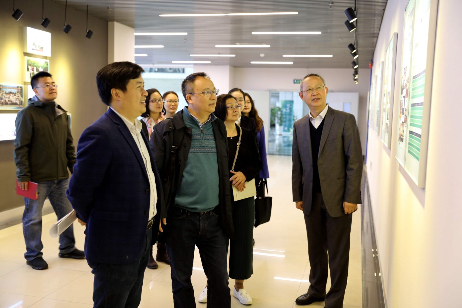 调研组在学院领导的陪同下,参观了学院的文化墙,听取了学院基本情况的介绍,走访了学院的VR创新实验室、高可信计算实验室、网络安全实验室和教育部工程中心学生实验室(嵌入式系)。老师们在听取介绍的同时亲身体验,切实感受到我院在实验室建设上取得的成果以及实验室在本科教学过程中所发挥的重要作用。