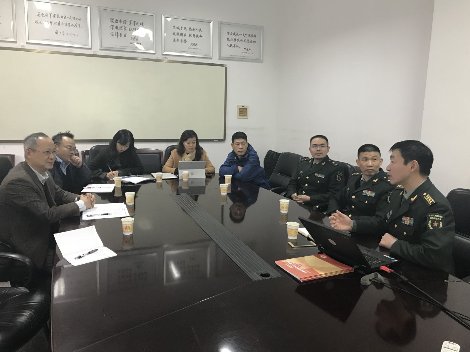 12月1日,计算机科学与bat365中文官网入口六名教师赴国防科技大学计算机学院开展教学调研工作。由副院长姜宁康带队,软件科学与技术系主任朱惠彪、院长助理曹桂涛、陆幼利副教授、杨燕老师和计算机系主任助理窦亮老师一同出访,国防科技大学计算机学院博士生导师毛晓光教授接待了来访教师并主持了调研会议,国防科大计算机学院的周老师和陈老师参加了调研会议。
