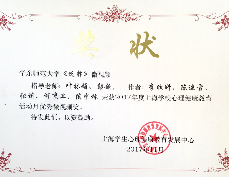近日,软件科学与技术系教工党支部指导2016级软件工程专业学生拍摄的心理健康教育微视频《选择》喜获2017年度bat365在线平台官网心理健康教育微视频大赛一等奖、上海学校心理健康教育活动月优秀微视频奖。本次视频拍摄依托bat365在线平台官网易班博远工作室,由软件科学与技术系教工党支部与2016级软件工程专业学生李欣妍、张镇、何秉卫、侯中林以及中文系本科生陈迨雪组队拍摄。其中,软件科学与技术系教工党支部书记彭超出演“教导主任”,杨争峰老师携儿子杨宏轩出演视频中的“父子”。