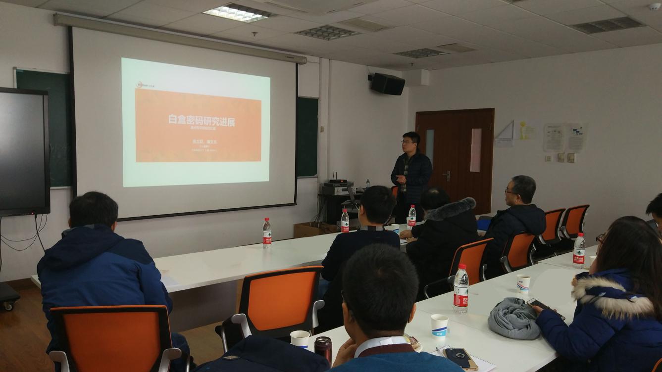 史扬做了题为《白盒密码学—安全模型,设计方法和分析》的报告,报告介绍了白盒攻击环境及白盒密码、白盒密码的安全模型,白盒密码的实现思路,以及白盒攻击模型 VS 弱白盒攻击模型、强白盒安全性 VS 弱白盒安全性等方面的知识。