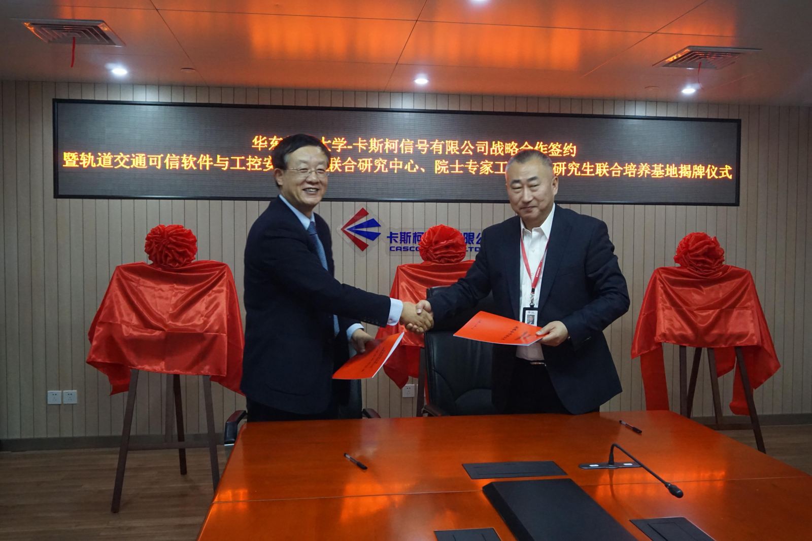 基于华东师大与卡斯柯过往的密切合作以及所取得的效果,为充分发挥并不断发展双方的资源、能力和优势,经双方协商一致,决定建立多渠道、深层次的长期战略合作关系,共同建立“技术联合研究中心”、“院士专家工作站”、“研究生联合培养基地”。其中:
