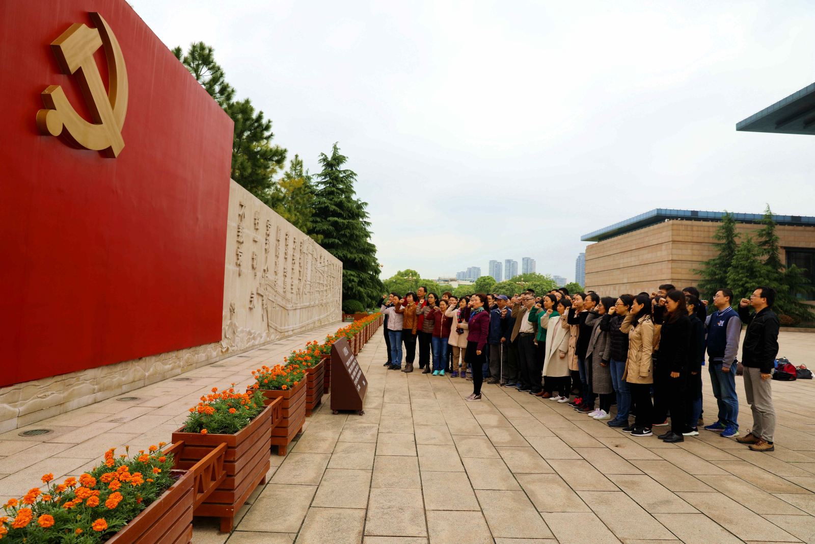 党员们首先来到宣誓广场,在南湖革命纪念馆宣誓墙前,面对鲜红党旗庄严郑重地举起右手,在党委书记李恺的领誓下,重温了入党誓词。