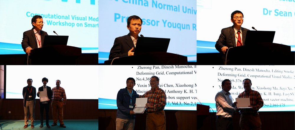 活动中,CVMJ杂志主编清华大学胡事民教授宣布了2017年度CVMJ杂志获奖论文,并由副主编Ralph Martin教授为获奖者们颁发证书。会议还将持续两天,与会专家学者会进一步交流讨论。