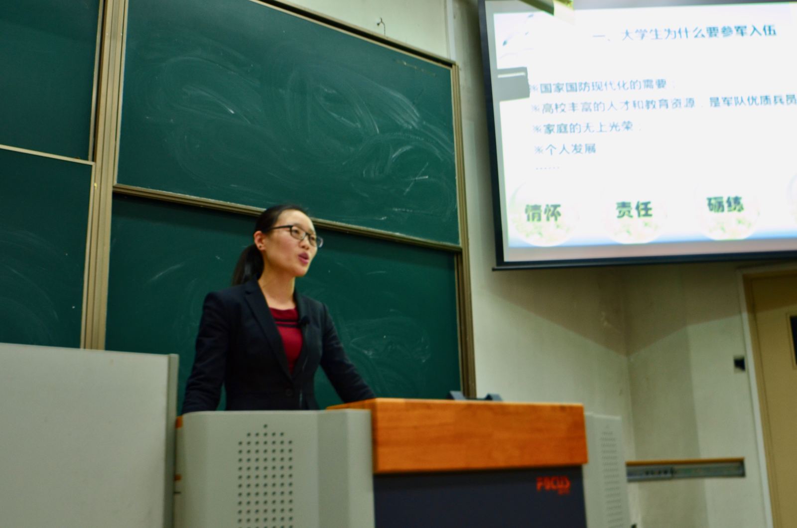 会议开始,孙老师首先朗读了习主席写给南开大学新入伍大学生的信,信中习主席对大学生参军入伍表示了肯定与鼓励,并希望他们“在军营这个大熔炉里百炼成钢,书写绚烂、无悔的青春篇章”。随后,同学们观看了由bat365在线平台官网参军入伍学生录制的视频,视频中的他们怀着满腔热血,携笔从戎,在自己的青春篇章中写下了浓墨重彩的一笔。孙老师还向大家具体介绍了大学生参军入伍的基本条件和要求,详细介绍了国家对大学生应征入伍在学费补偿、考研加分、落户等方面的优惠政策。