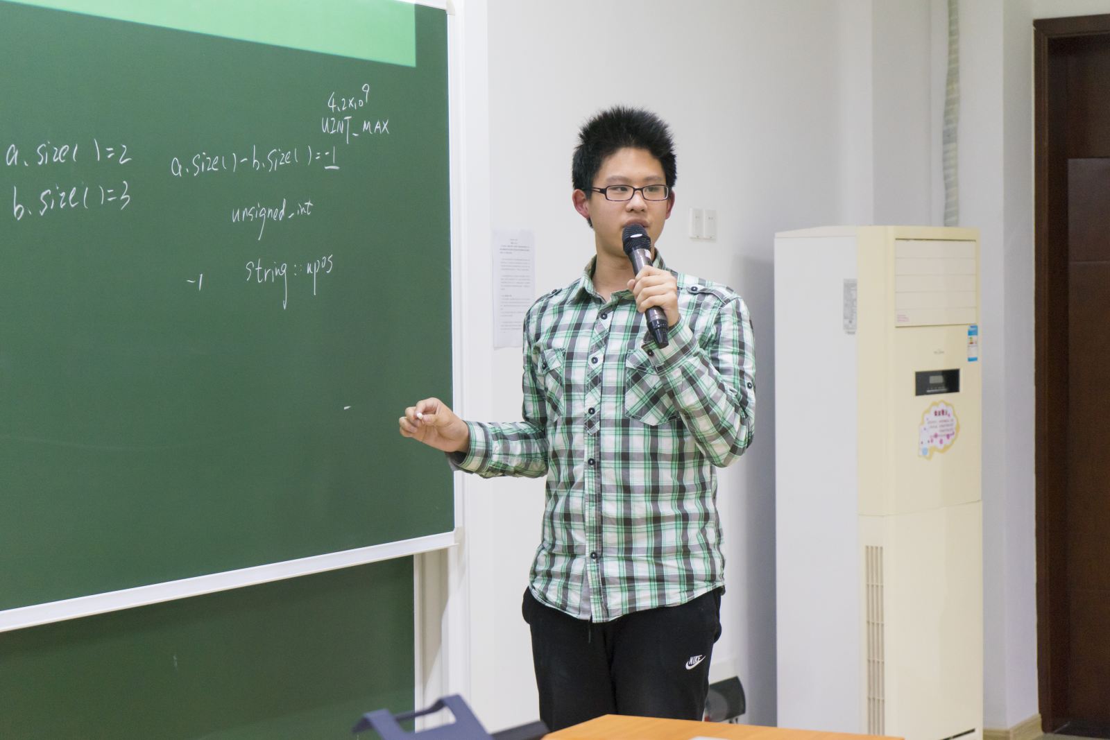 17级本科生韦国梁同学通过浅析STL,与同学们分享了他的编程之道。首先,他介绍了什么是STL,结合第一次程序实训的题目细致地介绍了string及其相关函数,vector及其相关函数,sort使用方法和高频考点排序题的技巧。此外,韦国梁根据实训考试特点,也向同学们介绍了很多应对技巧。
