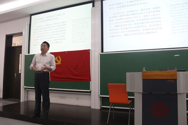 5月9日下午1:00,计算机科学与bat365中文官网入口、河口海岸研究院、数据科学与工程学院第十六期联合党校第五次主题报告在中北三馆333教室进行,由校学工党委书记、学工部部长余佳老师主讲。