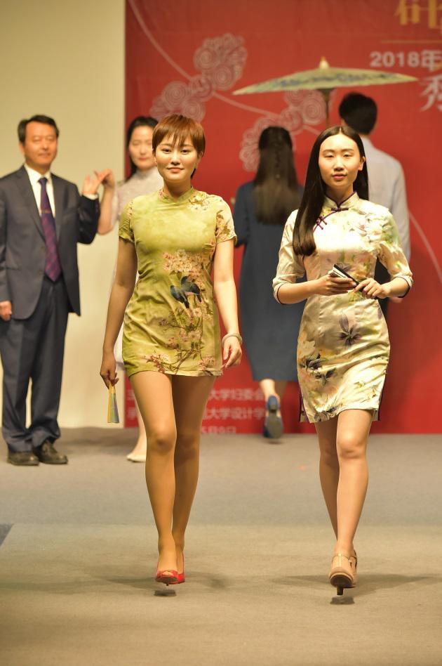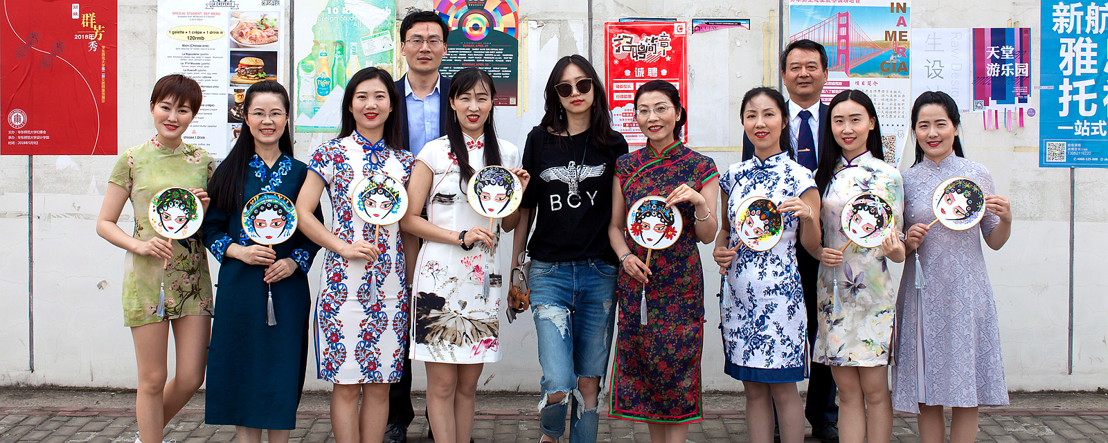 与上届参赛时的多系列服饰不同,本次展示我队选择中式改良作为唯一着装风格,风格的聚焦更好凸显了“抛开面具,秀出真我”这一主题。由专业国画师肖美老师根据服装色系,手工精心绘制在宫扇上的戏曲脸谱,成了我队的“秘密武器”,其醒目带有强烈符号感的中式风格与服装完美契合。林晶晶、陈蕾、孙玉灵、窦亮、朱敏、杨云、赵婧媛、丁金花、陈仪香、陈彪十位教工组成了最终战队。特邀职业模特刘恋和隋欣冉担任指导,其中刘恋老师曾获环球小姐亚军。
