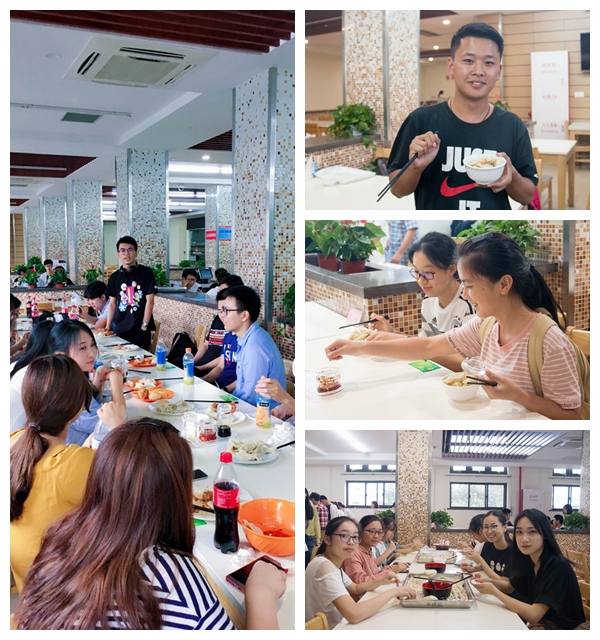在食堂大厨的协助下,热气腾腾的饺子终于出锅。同学们按捺住心中的激动,井然有序地取用自己亲手包出来的饺子。大家三三两两围坐一圈,一边品尝美味的饺子,一边热情地交谈,来自不同专业、不同省市的同学们彼此间有了更加深入的了解。