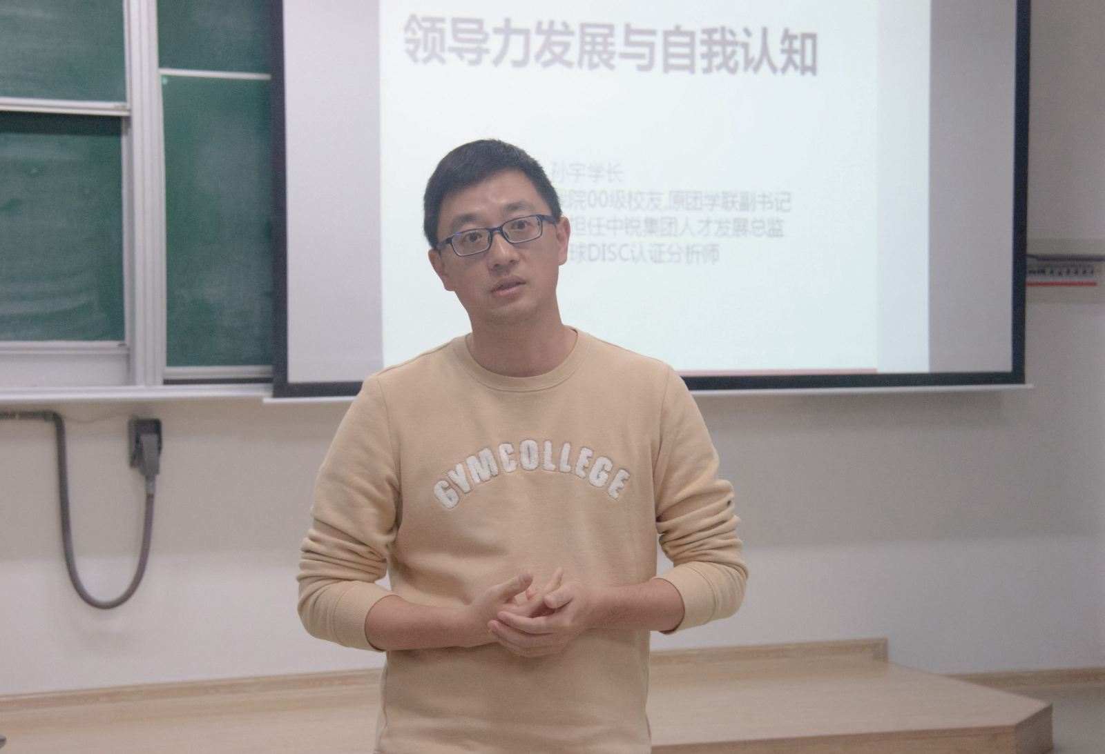 2018年11月10日,计算机科学与bat365中文官网入口团校邀请到365官网00级校友、原院团学联副主席,现担任中锐集团人才发展总监的孙宇学长,在田家炳教书院226为我院团校成员进行了“领导力发展与自我认知”的相关培训。