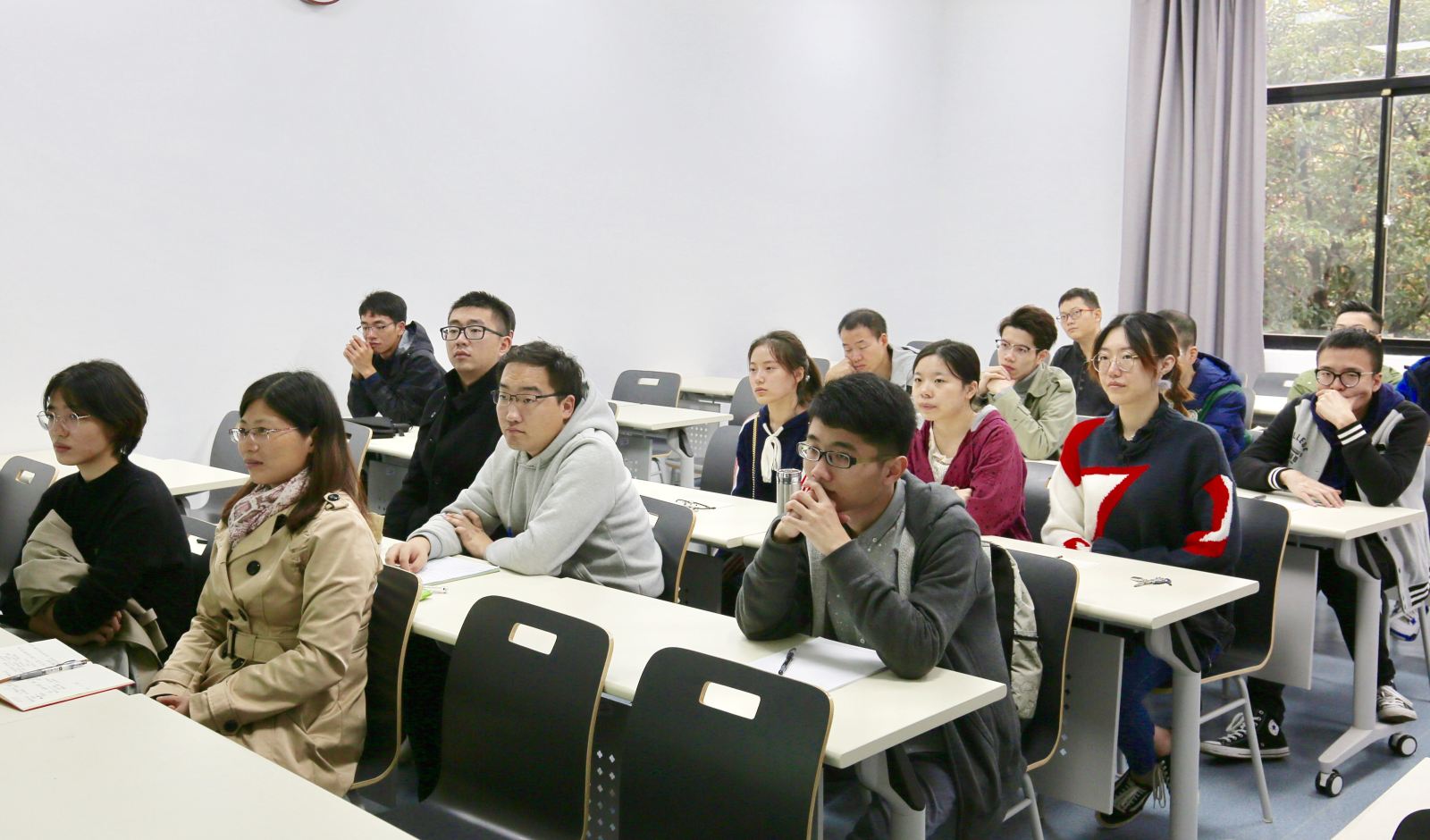 在讲座即将结束之际,王教授与同学们展开了热烈的讨论,同学们向王教授咨询了产权该怎么样保护、该怎么样准备论文等问题,王教授都耐心地一一解答,鼓励同学们加强创新精神,脚踏实地一步一步来做。
