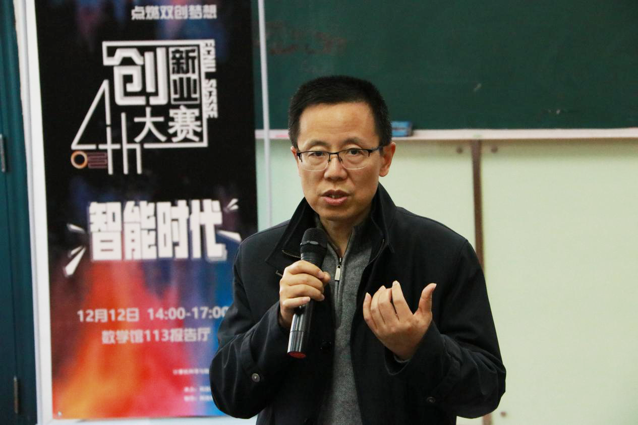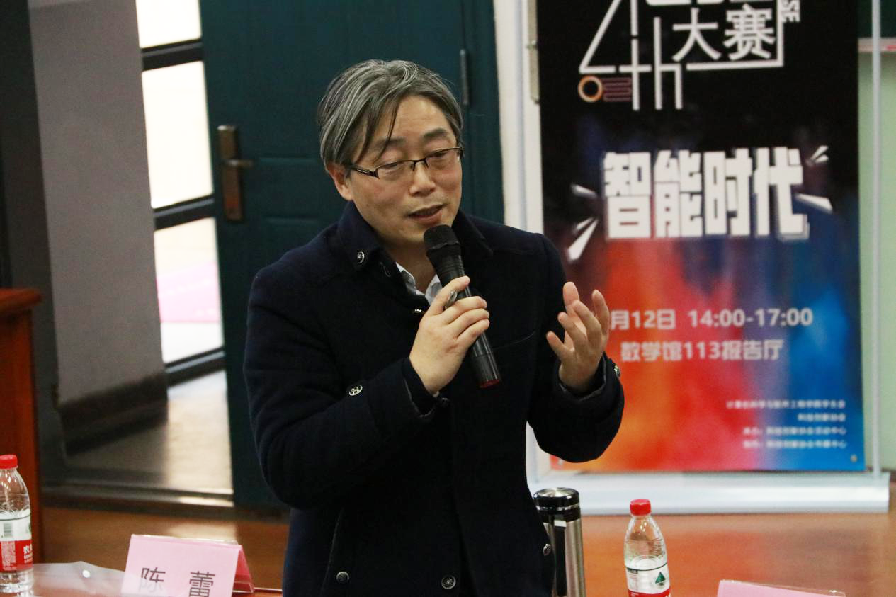 比赛开始前,王长波教授做精彩发言。王老师追忆大赛的“前世今生”,回顾了赛事15年来的发展历程,也高度赞扬了学院不断浓厚的科创氛围。他期望同学们要关注前沿科技发展,学会跨专业团队合作,做一个有担当,有责任的人。