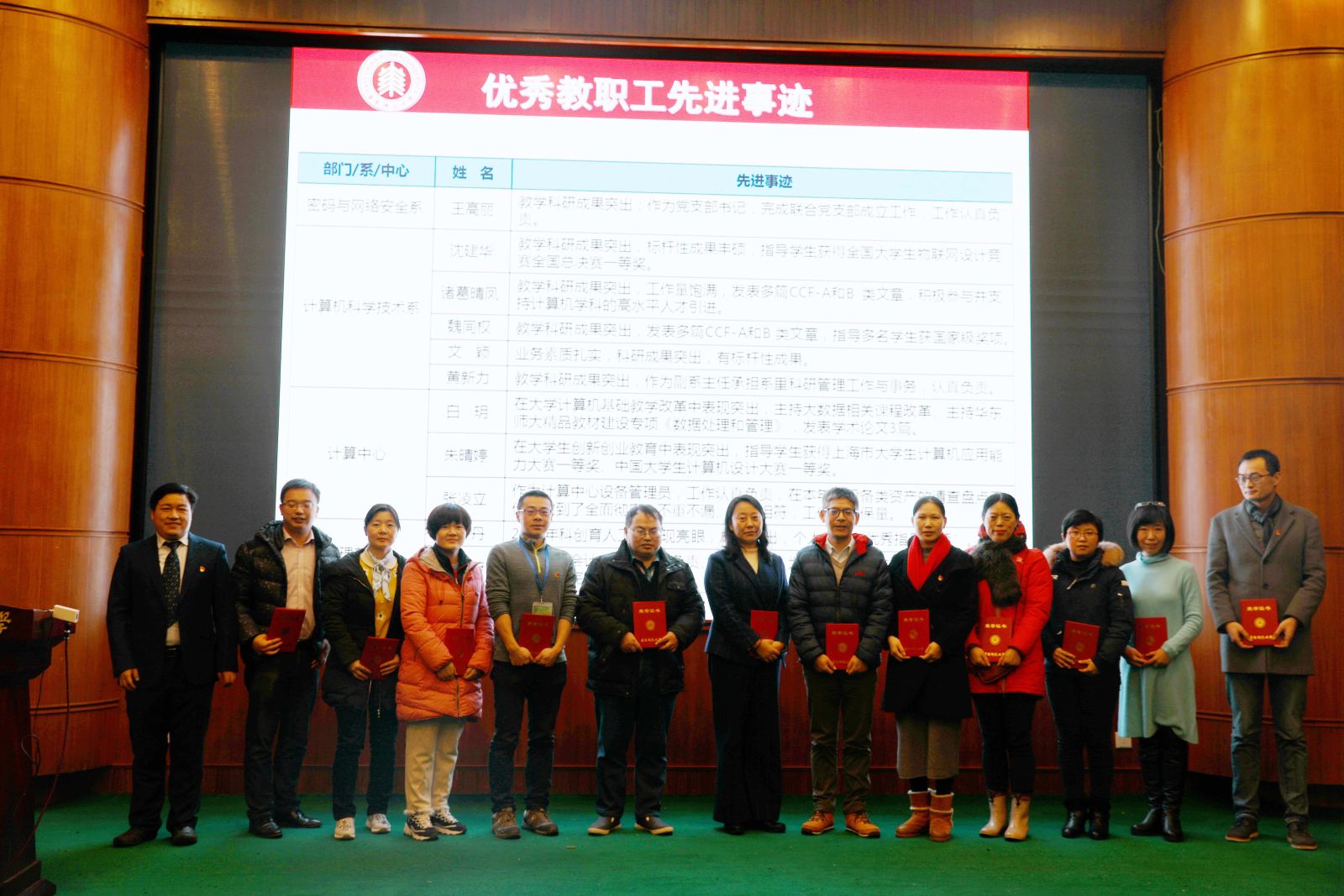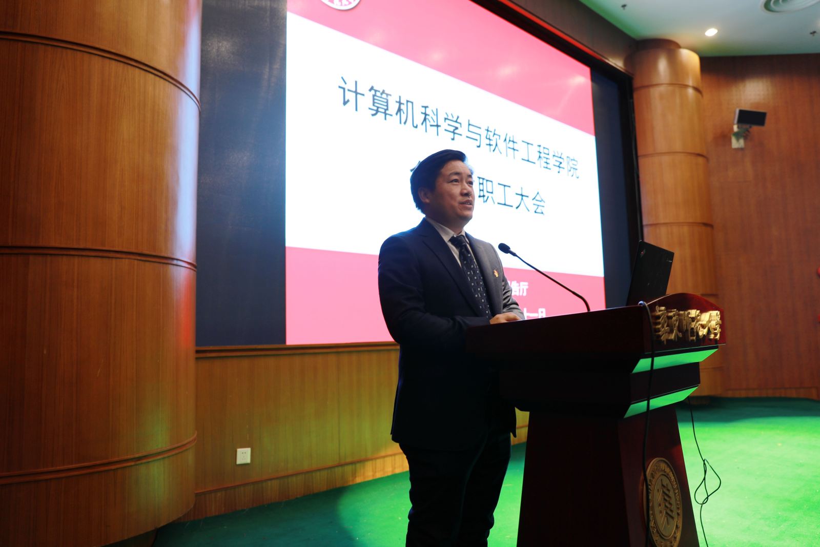 1月11日,计算机科学与bat365中文官网入口在中北校区逸夫楼报告厅举行全院教职工大会,隆重表彰先进。大会由学院工会主席宫学庆主持,党委书记兼常务副院长王长波,党委副书记兼副院长曹桂涛,副院长周爱民,副院长王晓玲及全体教职工共200余人出席大会。