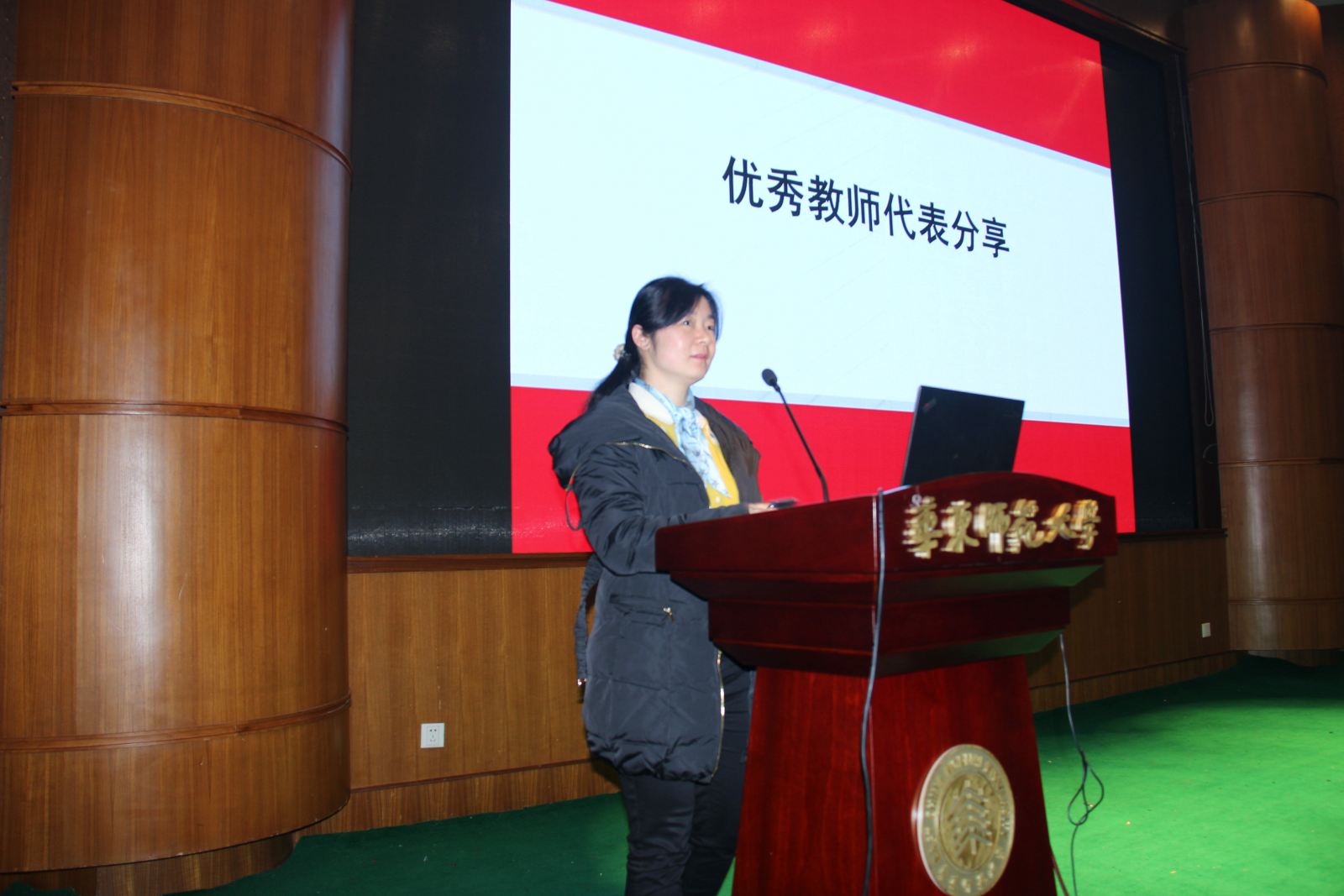 2018年度在各自岗位上有突出表现的21位优秀教师荣获优秀教职工称号。文颖研究员、缪炜恺副教授作为优秀教师代表上台分享了过去一年的工作感想与心得体会。