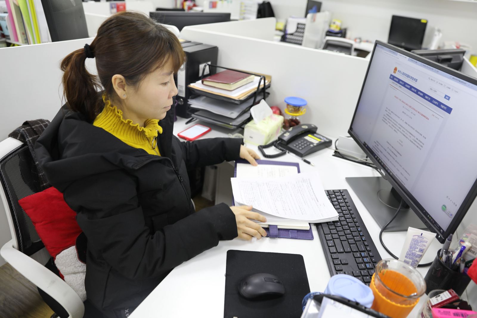 教师整理桌面,做好窗口服务
