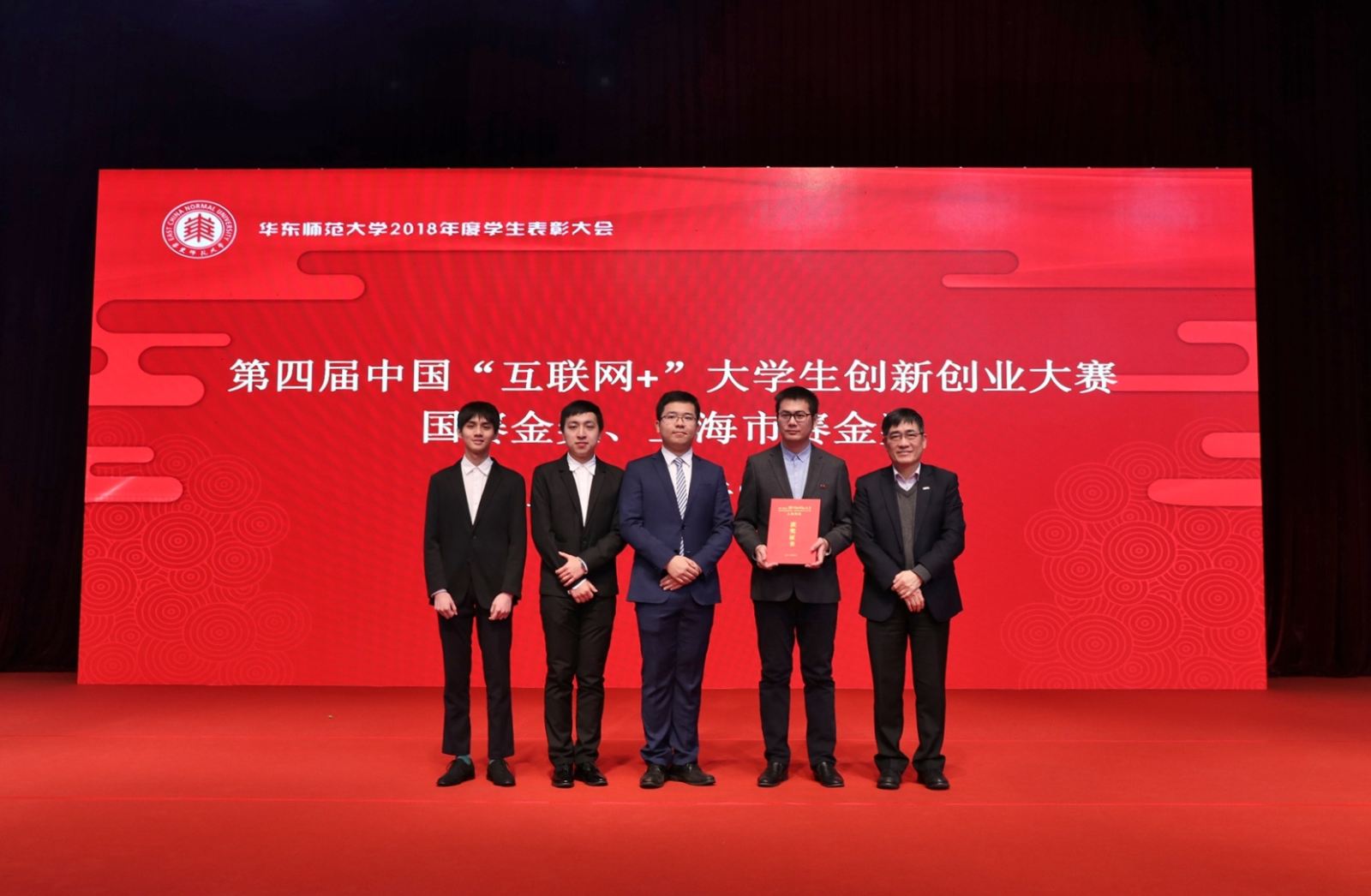 张思源(左二)所在上海STEM云中心项目团队获校党委书记童世骏颁奖