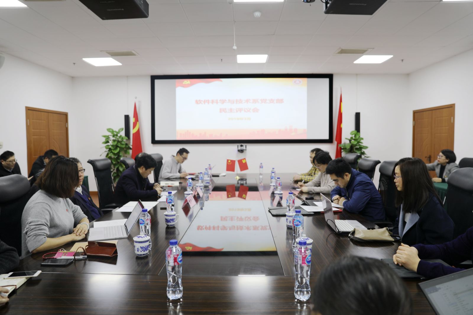 在民主评议环节,支部党员教师分别从教学、科研以及党员活动三个方面展开批评与自我批评,指出党支部工作在理论联系实际、教学科研方面取得的标杆性成果以及党支部的凝聚力等方面仍需要进一步加强。同时,围绕教学改革、项目申报等核心问题,也提出多条建设性意见,积极为2019年软件科学与技术系党支部工作的开展建言献策。