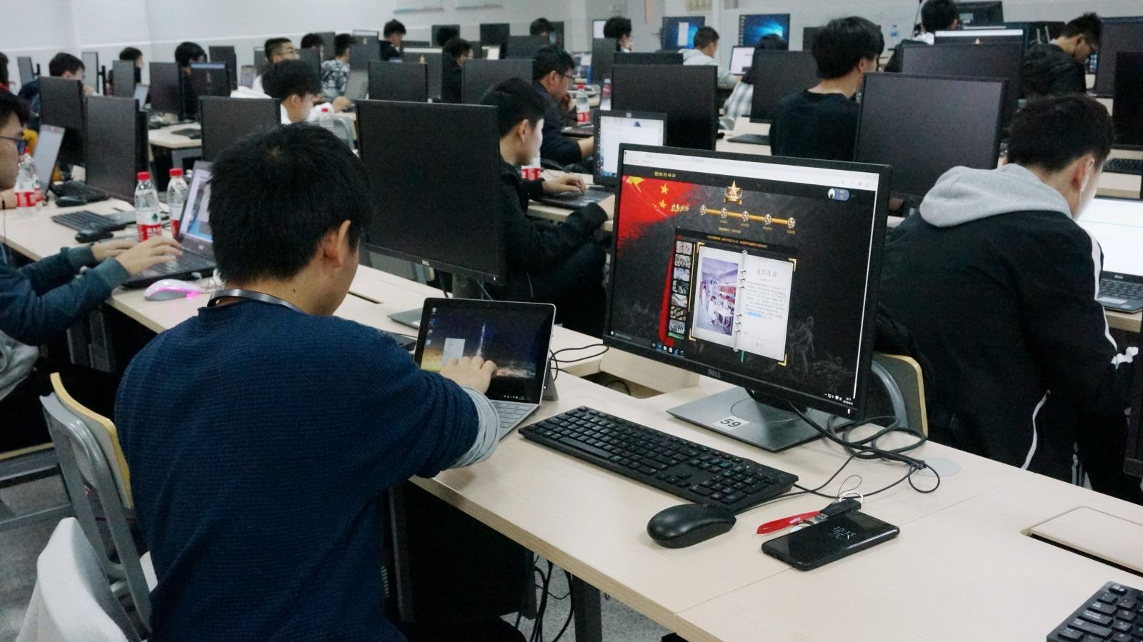中午12点,决赛准时在理科大楼机房开战。经过前期初赛选拔,共有70余名学生进入决赛。为纪念建国70周年,本次网络安全赛的初赛以抗日战争为主线,决赛以改革开放进程为主线。决赛的题目和线索隐藏在小岗村改革、教育改革、一国两制、高铁科技等事件中。同学们利用提示和各类工具,或破解密码,或发现漏洞,最终得到答案,共同推进“历史前进”。