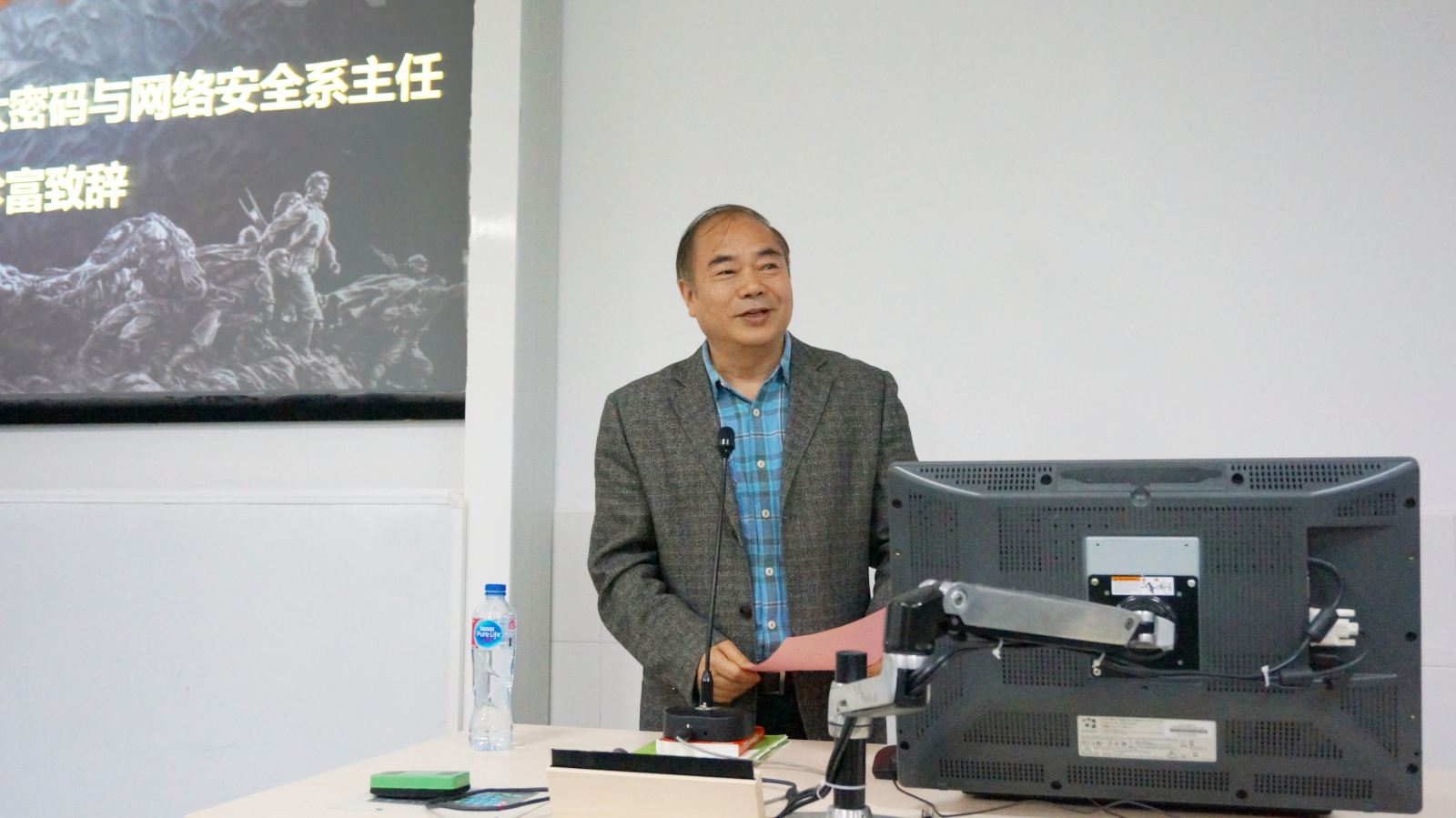颁奖典礼上,国家杰青、密码与网络安全系主任曹珍富发表讲话。他对上海嘉韦思信息技术有限公司的支持和参与组织比赛的工作人员表达了感谢,并对今后夺旗赛的发展表达了期望。曹珍富教授鼓励参赛者多多参与竞赛,立志成为网络安全人才。