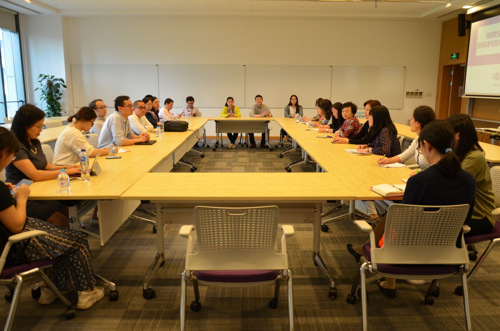参观之后,双方支部的老师围绕教学、科研、人才培养等方面,进行了广泛、深入的座谈交流。座谈会由上海纽约大学第二党支部支部书记周雅明主持。周雅明书记对软件支部党员教师的到来表示欢迎,其后支部职能部门的老师介绍了他们的工作理念:强调以服务为主,而不是管理为主。以此为指导,开展工作,更容易得到老师、学生的认可。上纽大的教师代表徐立华谈到,教学上最大的不同是:教师的工作得到很大的支持,其他的事务性事情有很好的服务团队为教师们服务,帮助教师更好地完成教学任务,使得教师能够将精力放在教学、备课上。