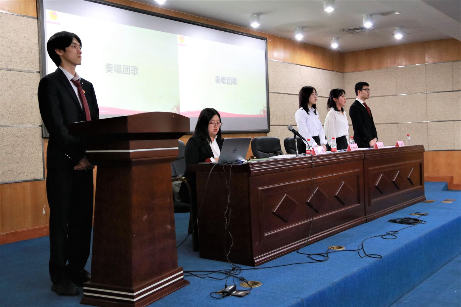 最后,团委书记朱丹老师为大会致辞,他首先肯定了上一届学生会全体工作人员的努力,对他们一年来的辛苦工作表示感谢。他对同学们提出了几点要求:敢于表达、敢于创新、提升视野,并期待学生会能够顺应潮流,改革奋进,再攀高峰。