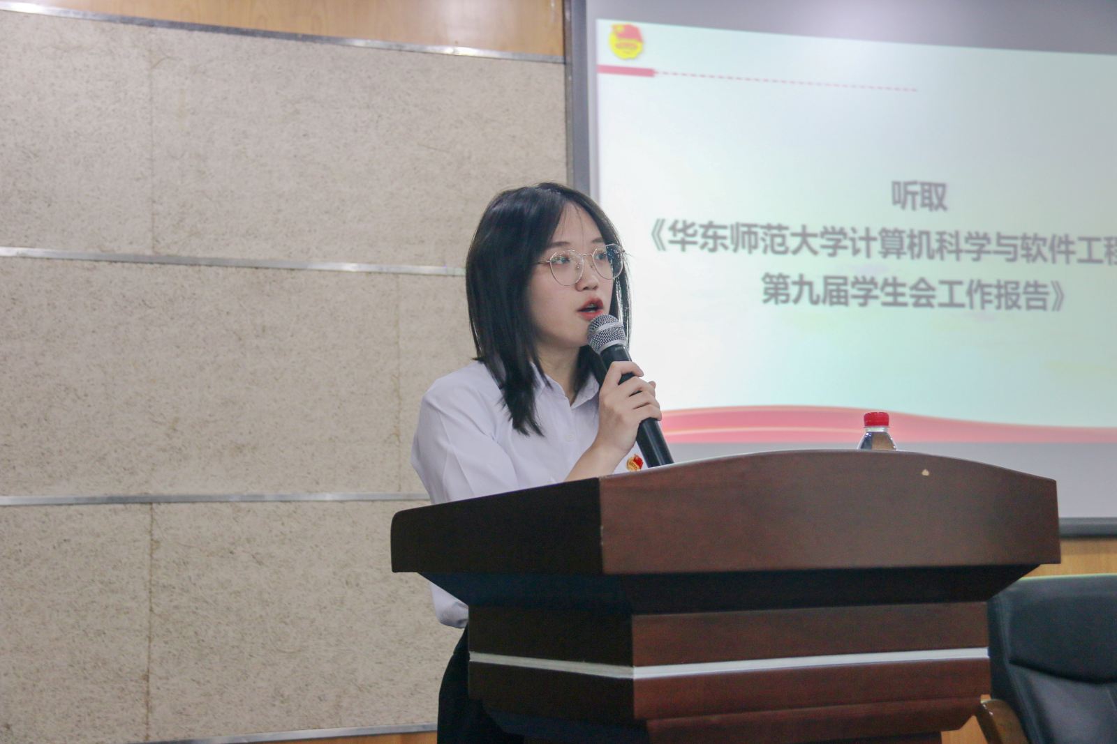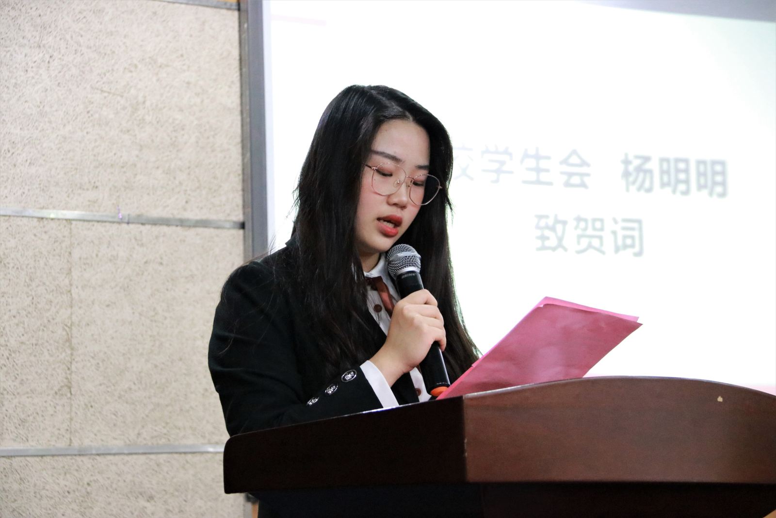 学生会主席张姝媛作第九届学生会工作报告,报告从团队建设、学子风采、团学风采、探索团学服务新格局及优化品牌活动五个方面回顾了学生会在过去一年取得的成绩,并表达了对学生会的美好期望。