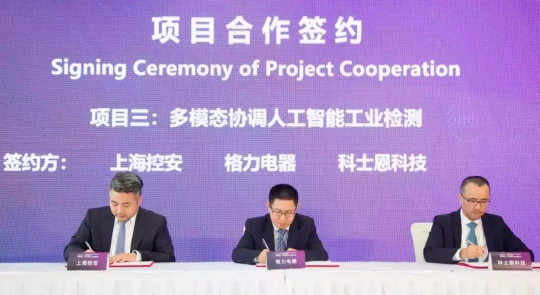 在安全分论坛上,学院2002级校友、上海工业控制安全创新科技有限公司COO刘毅代表企业与珠海格力电器股份有限公司工艺部、科士恩科技(上海)有限公司签署三方合作意向书。该项目提出了多模态协同的AI通用背景模型协同工业检测。