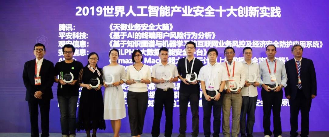 会上,何积丰院士为2019世界人工智能产业安全十大创新实践颁奖