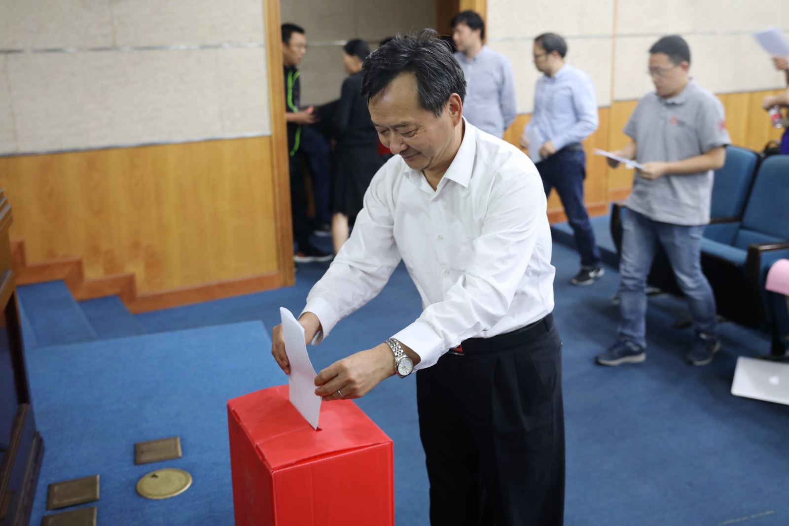 学院党委副书记曹桂涛就学院第四届工会换届工作做详细介绍。随后,大会表决通过了选举方案并选举产生了学院新一届工会委员。