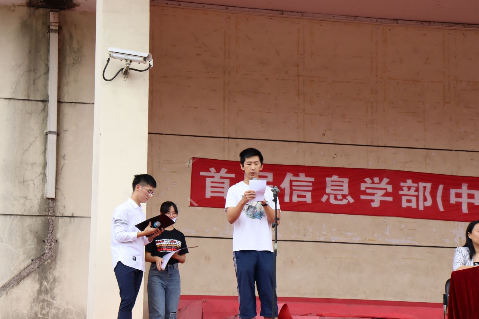 计算机科学与技术学院党委书记王长波宣布各学院方阵入场式评分结果。