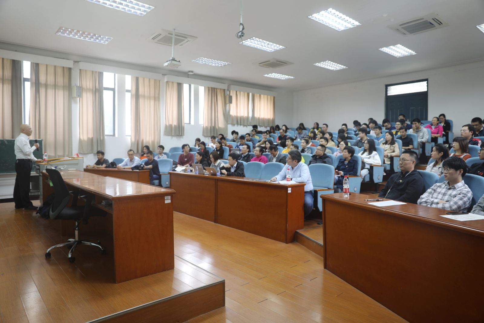 赵正桥老师从《共产党宣言》的初心使命思想蕴含、轴心理论视域下中西政治文明比较、《共产党宣言》初心思想与中国的偶合、《共产党宣言》初心使命思想的当代价值四个角度出发,讲述历任国家领导人与《共产党宣言》的不解之缘,解读习近平新时代中国特色社会主义思想对《宣言》的传承创新及新时代共产党人的历史使命。报告深入浅出地带领同学们从《共产党宣言》的角度,回顾了共产党人的初心与新时代赋予的历史使命。同学们认真聆听,受益匪浅。