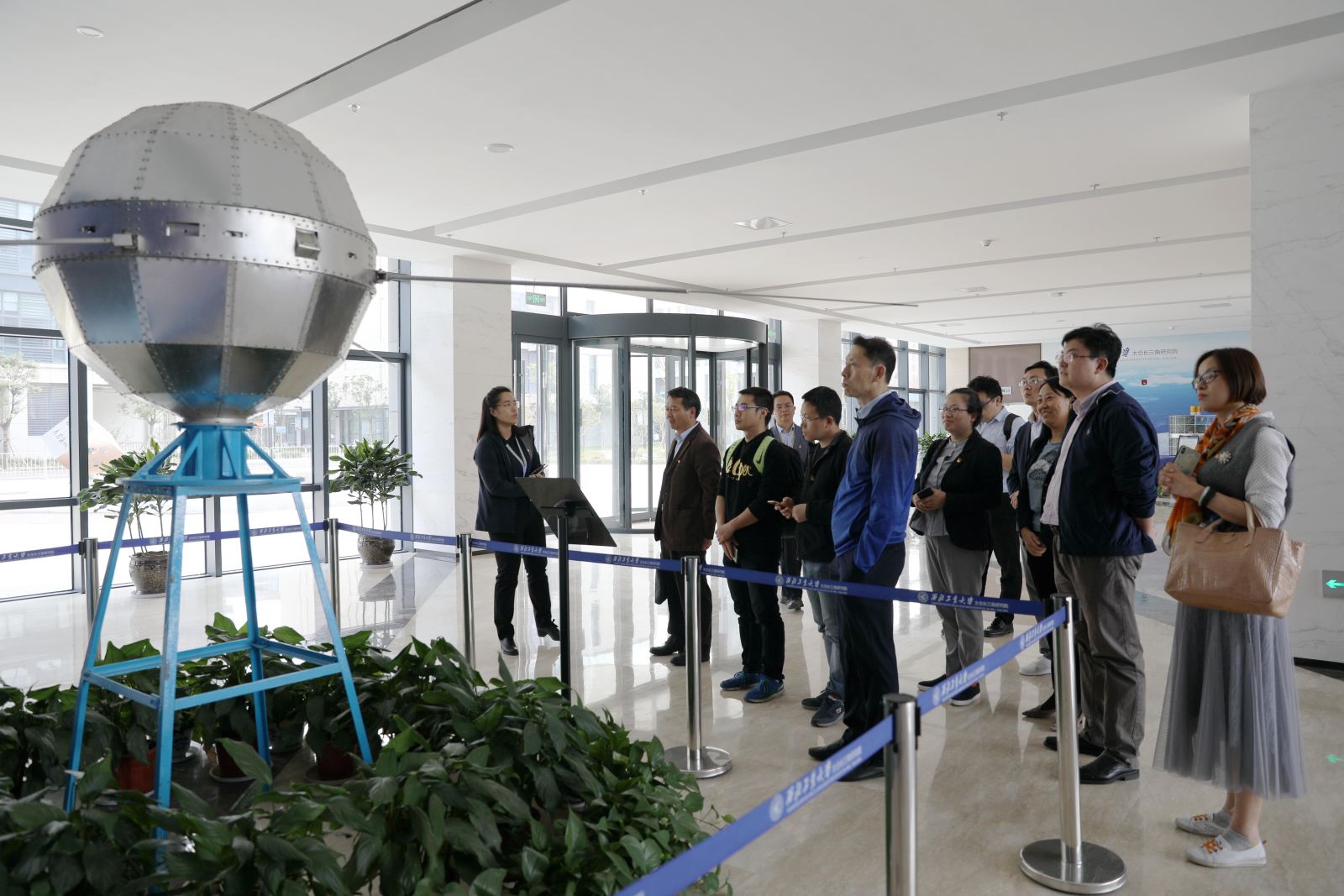 联组学习开始前,与会人员来到长三角研究院科技展厅,现场聆听西北工业大学介绍、西工大与太仓合作背景、太仓长三角研究院整体情况等内容。东方红一号、东方红二号、实践二号卫星备份星等实物展品,让教师们深刻感受着研究院致力于建设成为长三角地区核心、绿色科技新引擎的发展目标。