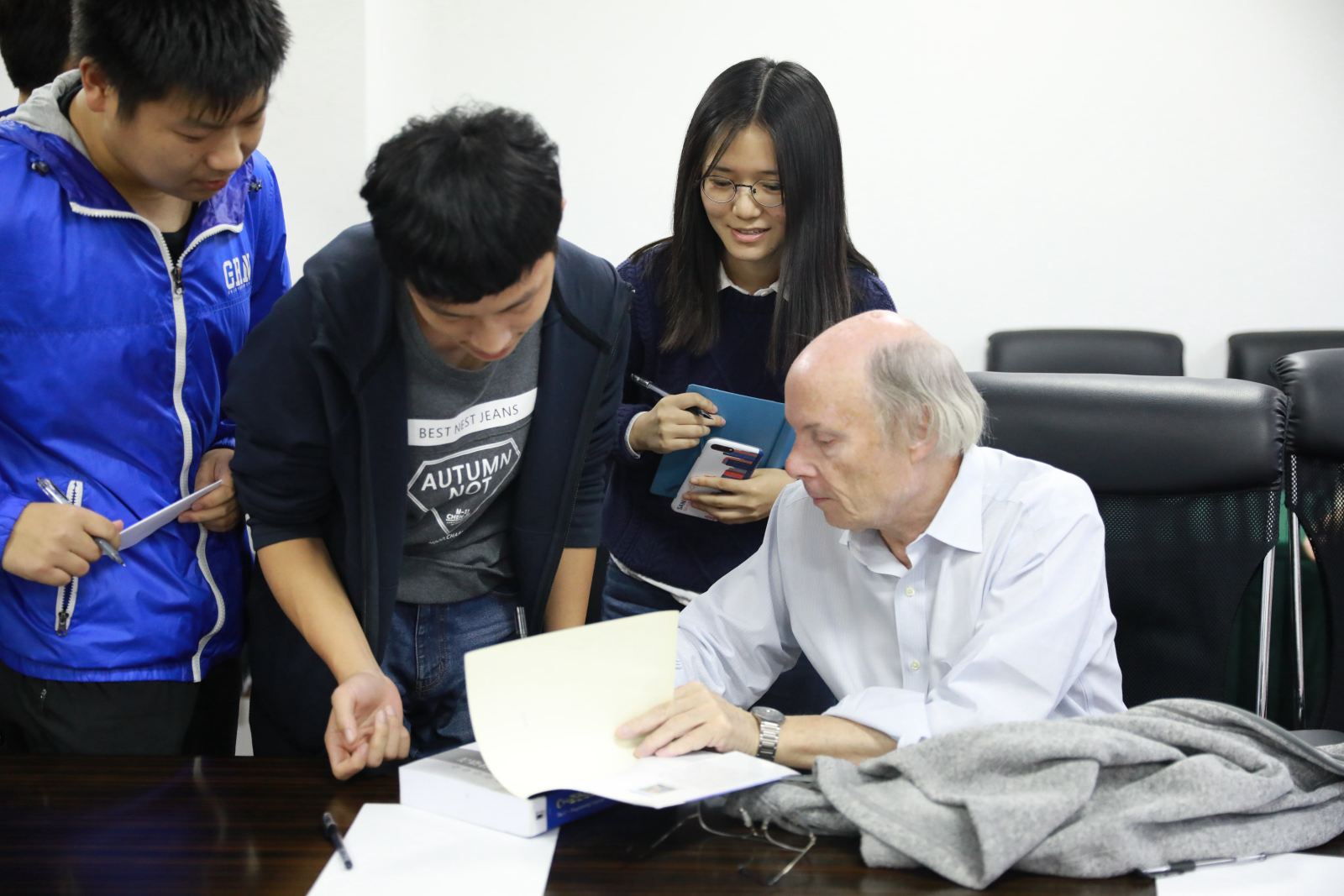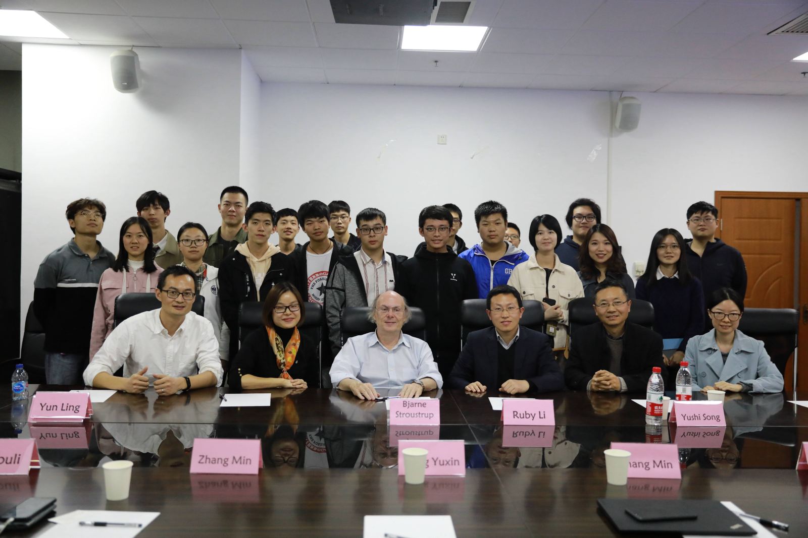 报告后,Stroustrup教授还与bat365中文官网入口的师生代表们进行了座谈,为师生们答疑解惑。面对小粉丝们签名、合影留言的愿望,Stroustrup教授也一一满足。本次与Stroustrup教授面对面,为学院师生们提供了与计算机行业顶尖学者面对面交流的机会,跟随大师概览了C++演变历程,使大家受益匪浅。