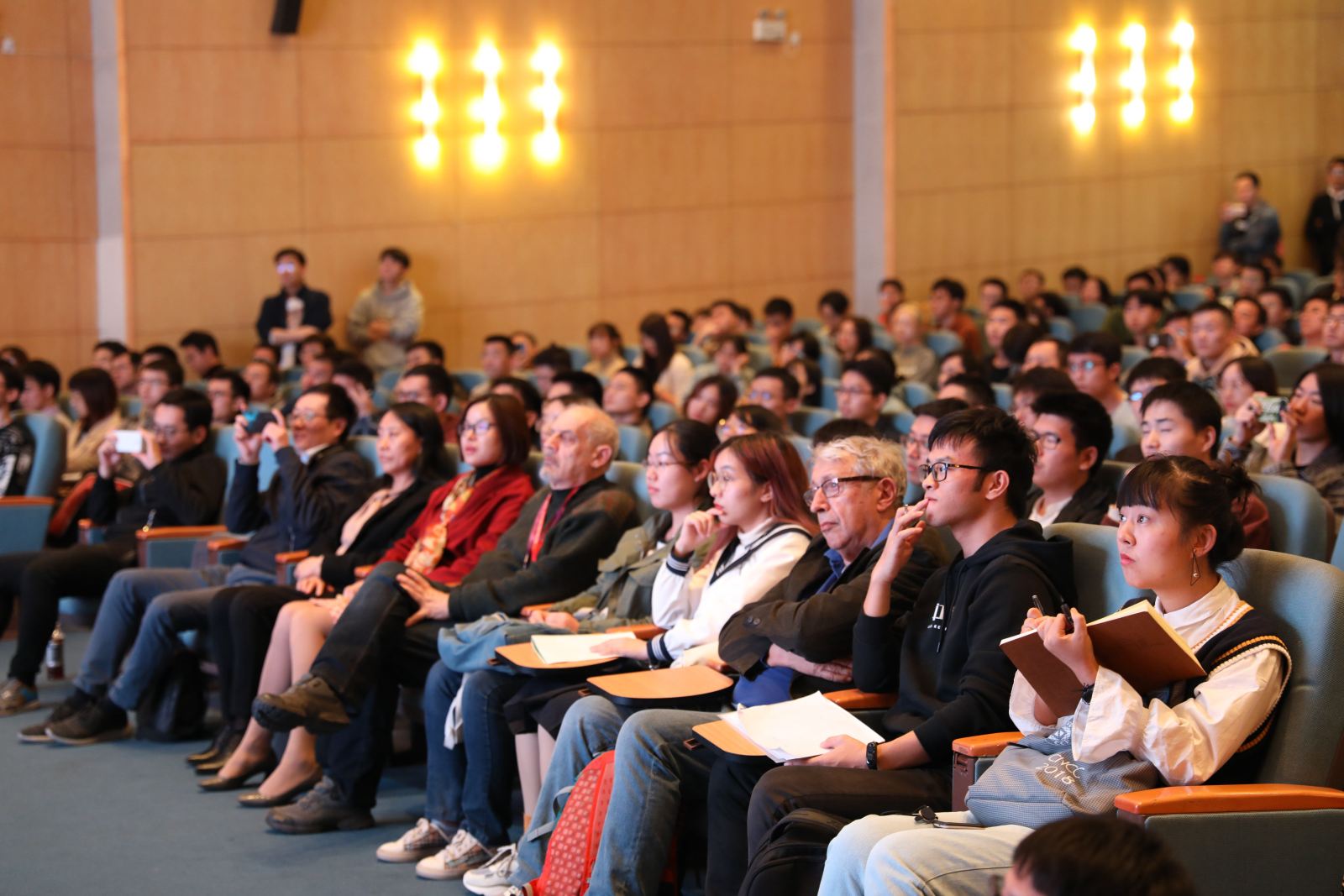 Stroustrup教授作为C++之父,从回顾数十年前的设计初衷开始,深入浅出,分享了如何坚持理念、不断创新,并隆重推介最新标准化的C++20。在此前已经有奠定经典的C++98、耳目一新的C++11、锦上添花的C++17多个成功版本。当介绍到抽象层数的复杂性时,Stroustrup教授生动地运用“洋葱原理”作比——我们剥到越深层越会想哭,引起了现场同学的强烈共鸣。