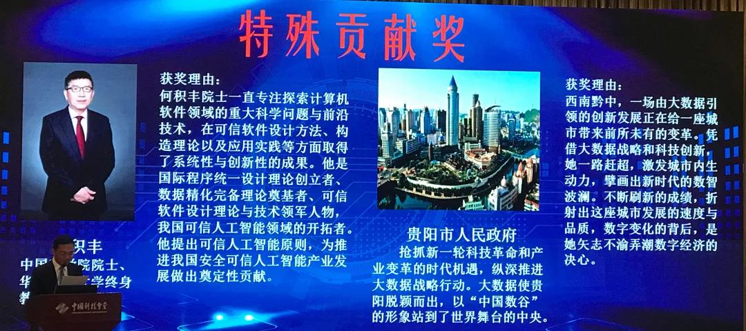 为了激发更多科技工作者和社会有识之士投入科技传播事业,学会探索设立了专项大数据科技传播奖,何积丰院士及中科院院士郭华东、中科院院士吕敏与贵阳市人民政府获得特殊贡献奖。