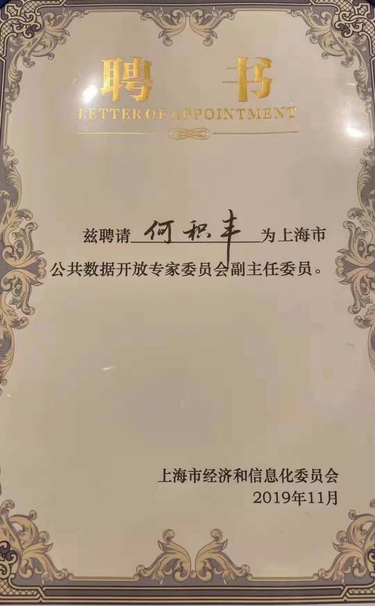 何积丰院士获聘上海市公共数据开放专家委员会副主任委员
