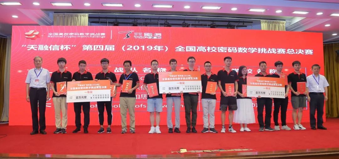 学生团队登上第四届全国高校密码数学挑战赛最高领奖台(右三钱佳威、右二刘竹森)