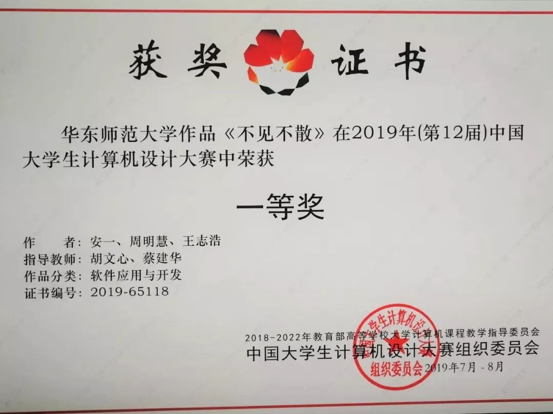 2019年中国大学生计算机设计大赛中安一同学团队荣获一等奖