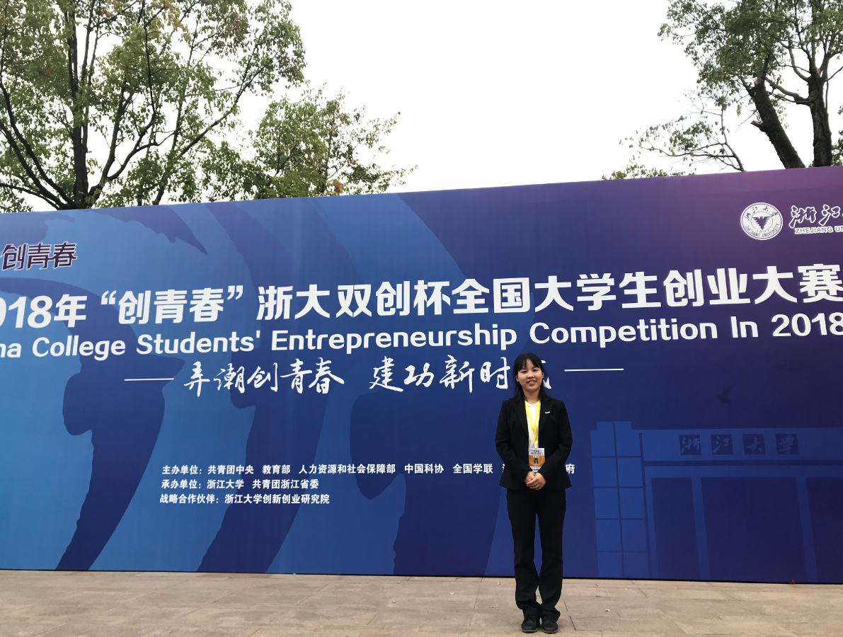 “敏于观察,勤于思考,善于综合,勇于创新。”大学三年,创新创业带给她丰富的灵感和收获。她积极参与课外创新实践项目,参与市级本科生创新训练培育项目,主持校级本科生创新训练培育项目,参加校创新创业大赛。在数次的探索与实践中,在团队的共同努力下,获得了第四届中国“互联网+”大学生创新创业大赛金奖以及2018“创青春”全国大学生创业比赛金奖。