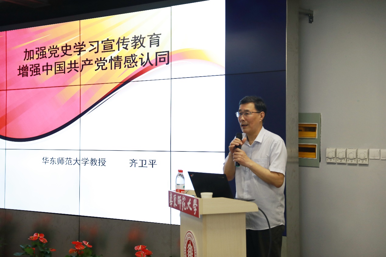 6月24日,bat365中文官网入口邀请市委讲师团“四史”专家宣讲团成员、bat365在线平台官网政治学系终身教授、马克思主义学院特聘教授齐卫平作题为《加强党史学习宣传教育 增强中国共产党情感认同》专题报告。本次活动以线上线下结合的方式展开,全院师生党员及骨干教师共同参与,一同“探究中国共产党成功的密钥,求知中国共产党的未来”。本次宣讲报告会由学院党委书记钱海峰主持。
