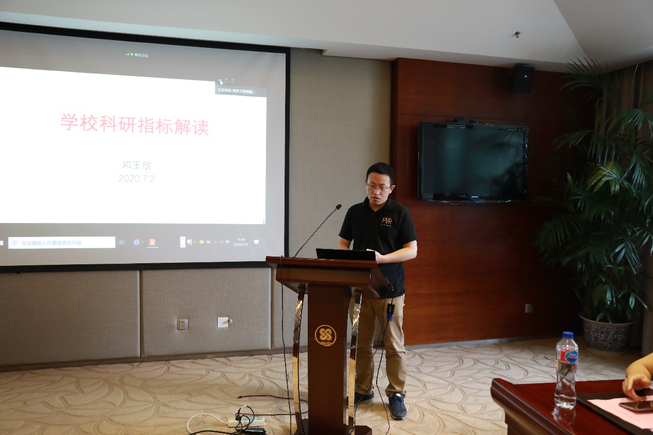 会上,学院副院长邓玉欣及张敏结合学校要求,就科研指标、学院本科教学的现状和发展等做具体分析。