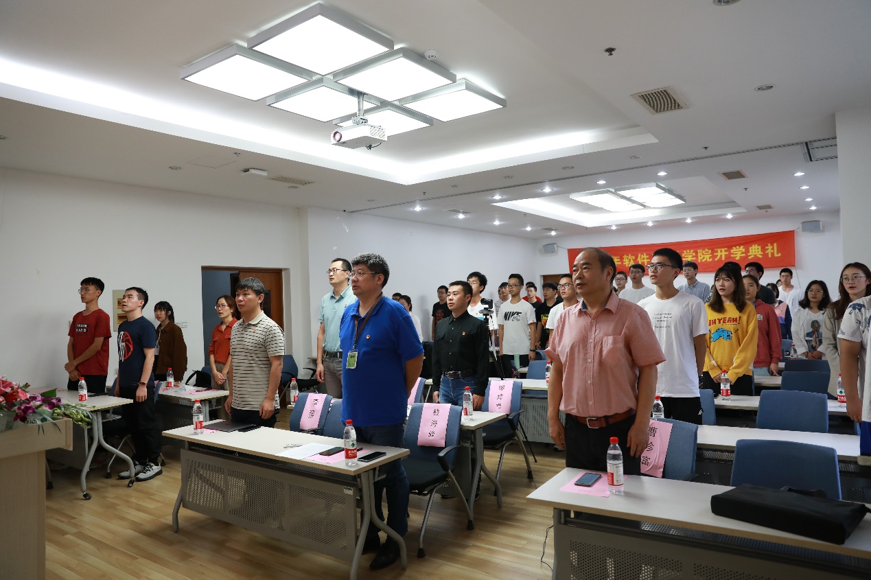 开学典礼在庄严的齐唱国歌声中拉开序幕。