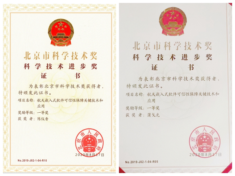 为奖励做出重大科学发现、做出重大技术发明、完成和应用推广创新性科技成果,在推动科技进步和经济社会发展方面具有突出贡献的个人和组织,9月10日,2019年度北京市科学技术奖励大会在北京会议中心召开。bat365中文官网入口陈仪香和蒲戈光两位教授所在团队依托航天五〇二所承研的“航天嵌入式软件可信性保障关键技术和应用”项目获2019年度北京市科学技术进步一等奖。