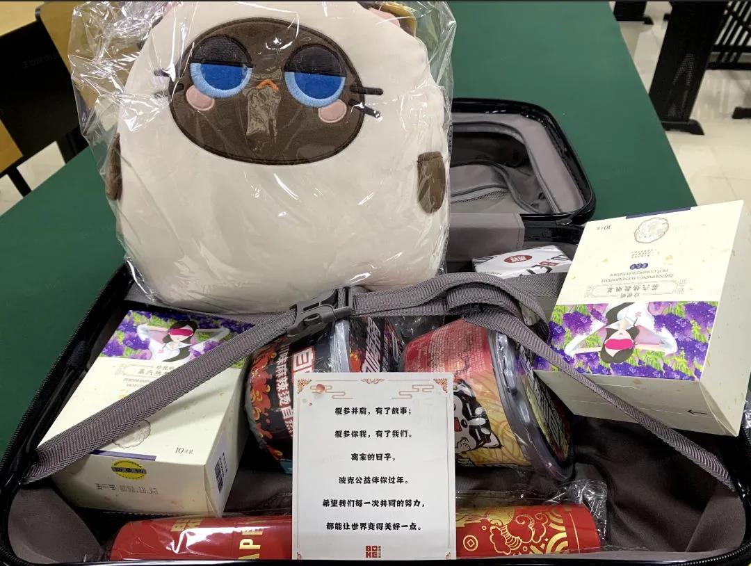 受新冠肺炎疫情影响,bat365中文官网入口学生响应国家就地过年的号召,选择在学校度过这场特殊的春节。为了让留校同学感受到如在家过年般的温暖,近日,学院携手波克公益先后为同学们送上了新年礼包。