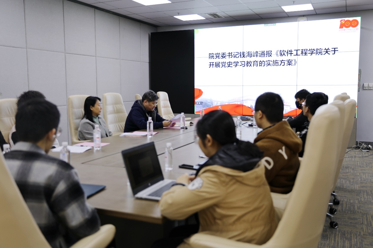 钱海峰通报《bat365中文官网入口关于开展党史学习教育的实施方案》。他强调,今年是中国共产党成立100周年,全院上下要提高政治站位,深入学习领会开展党史学习教育的重大意义,以实际行动和优异成绩献礼建党100 周年和建校 70 周年。要贯穿落实“学史明理、学史增信、学史崇德、学史力行”四个方面,将三个阶段的学习同推动学院中心工作结合起来,把学习教育成果切实转化为工作动力和实际成效。