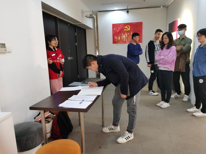 参观完展览后,支部成员与现场工作人员展开交流,并积极在留言板上留言。