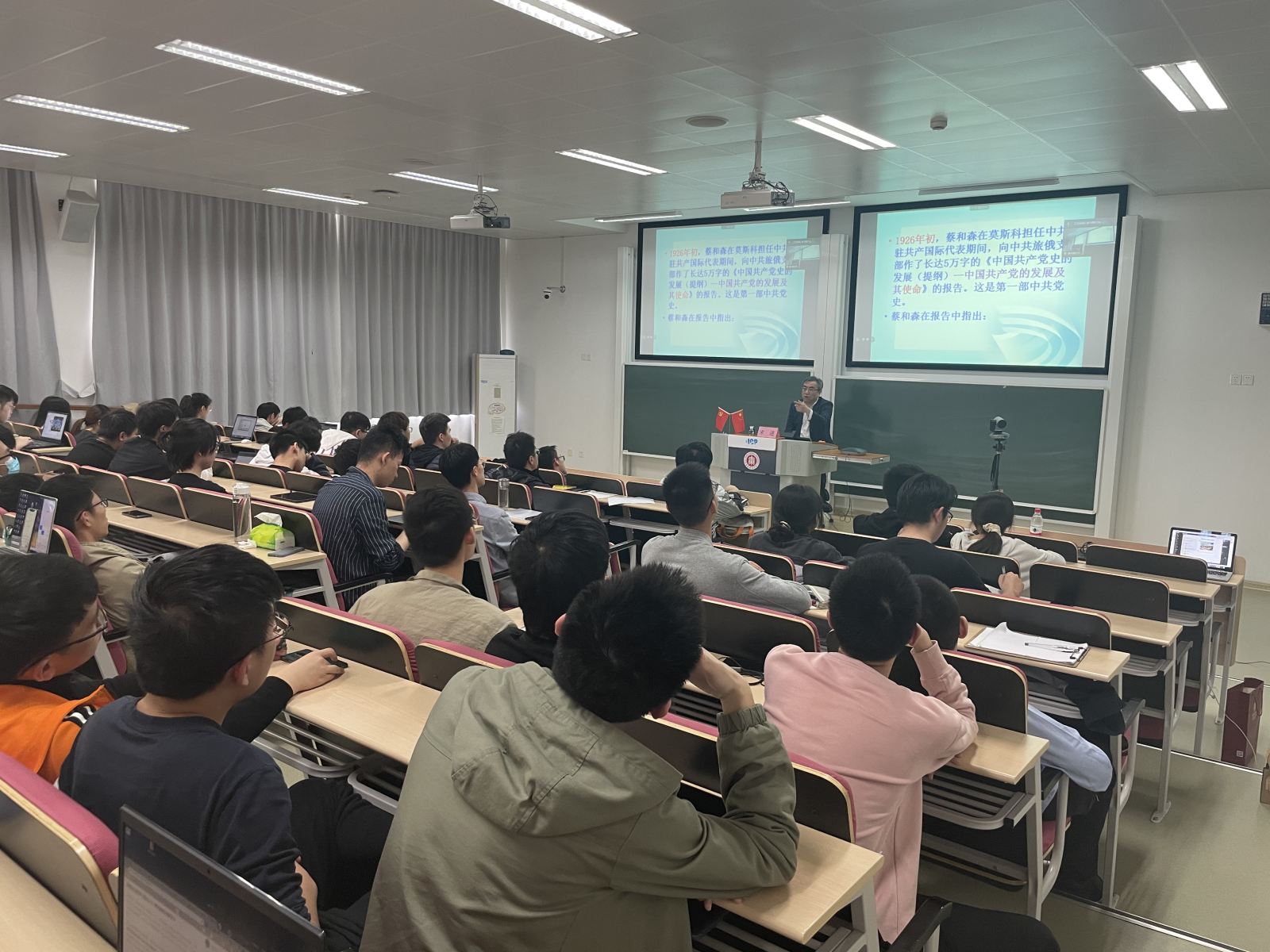 2021年4月28日,bat365在线平台官网春季学期“形势与政策”课核心课程于教书院316顺利展开,主讲人为市委讲师团党史学习教育专家宣讲团成员,bat365在线平台官网紫江特聘教授,马克思主义学院教授、博士生导师宋进。在庆祝党百年华诞的重要时刻,在“两个一百年”奋斗目标的历史交汇节点,宋进老师为同学们带来了主题为“中国共产党百年历史的回顾与思考”的专题课程,回望百年党史,学习先辈精神。bat365中文官网入口2020级1班、2班共86名同学在线下聆听课程,同时在线上还有来自孟宪承书院、经管书院、bat365中文官网入口、通信学院、音乐学院、美术学院共728名本科生通过收看直播的方式共同参与了课程学习。