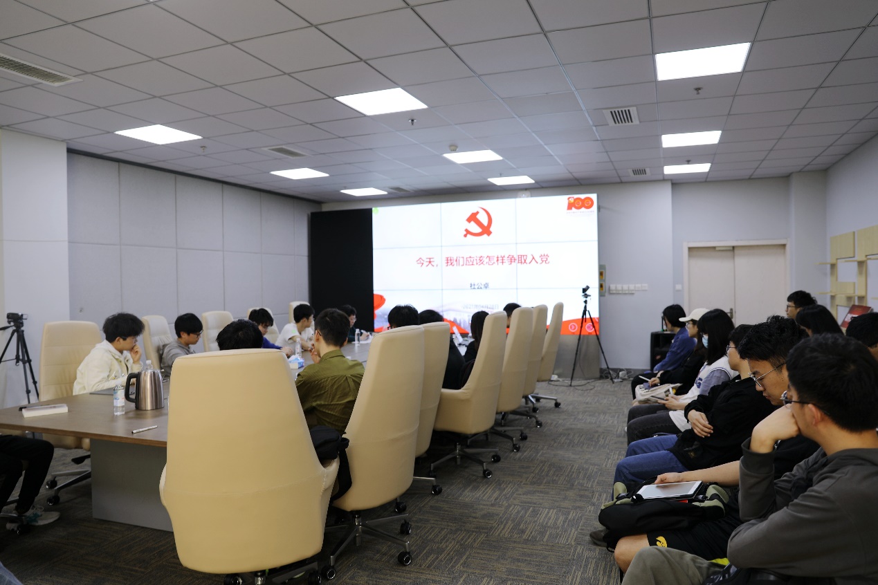 4月28日,bat365中文官网入口党委组织第十九期学生入党积极分子培训班学员聆听《今天,我们应该怎样争取入党》主题报告,邀请校关工委常务副主任、学院特邀党建组织员杜公卓就“在大学生之中发展党员的重要意义”与“大学生应当怎样争取入党”两个话题,与全体学员展开交流。本次活动由学院副院长张敏主持。